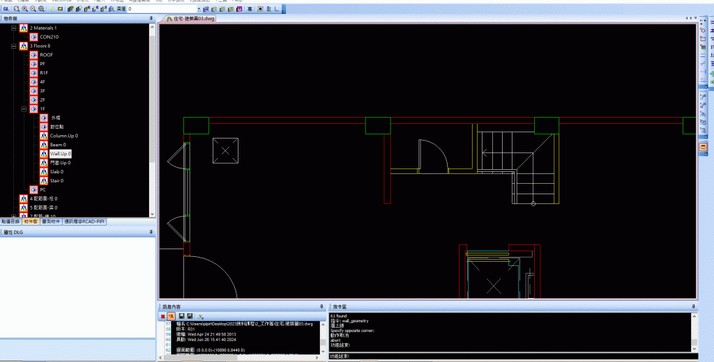 完成讀取之牆位,會以實心圖層表示,並顯示於左側樹狀節點區。